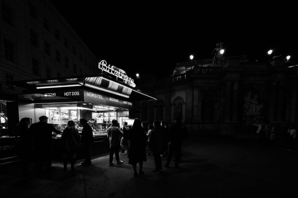 Bitzinger´s Würstelstand at Albertina is Vienna’s most iconic sausage stand, known for late-night snacks, Käsekrainer, and a stylish take on street food.