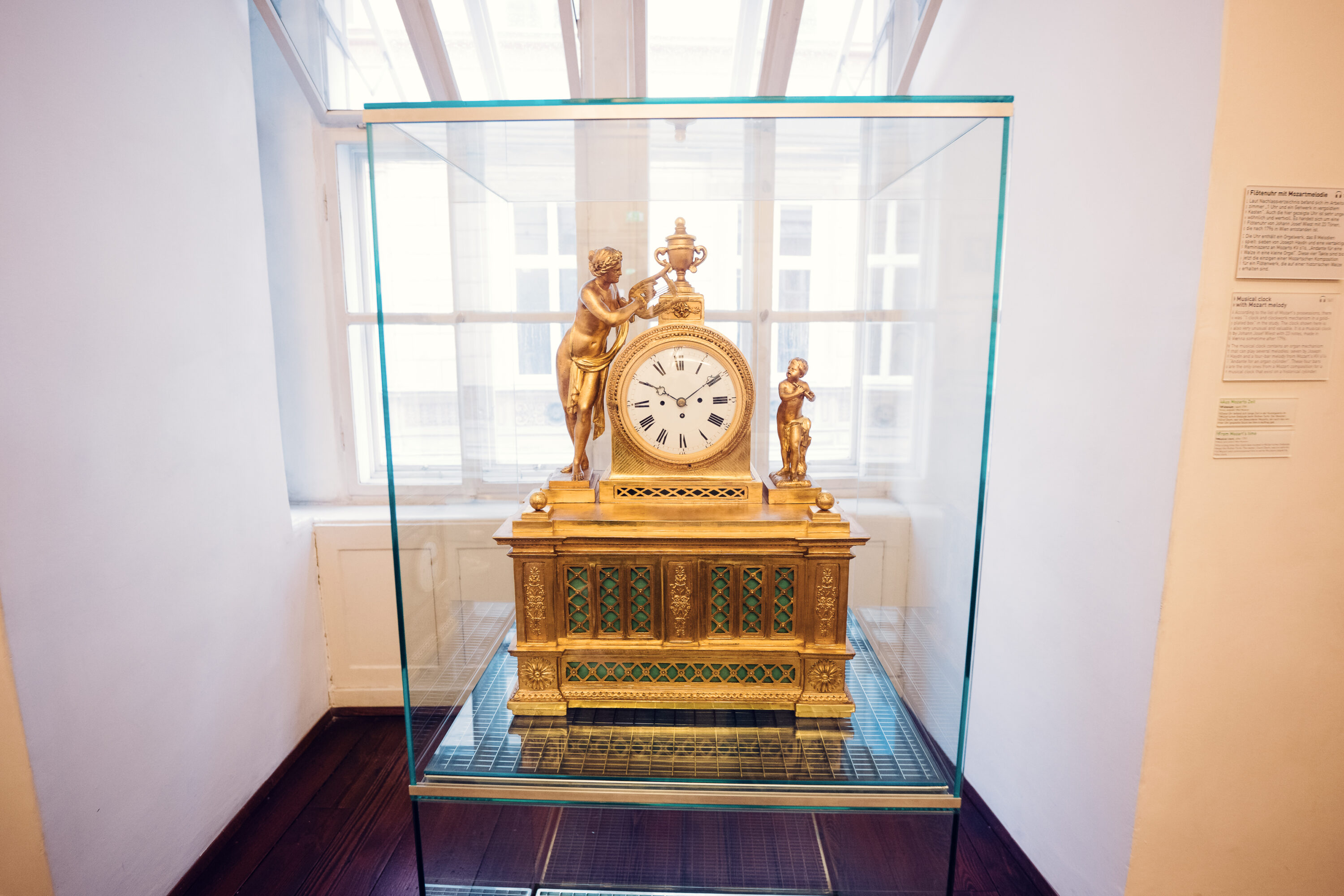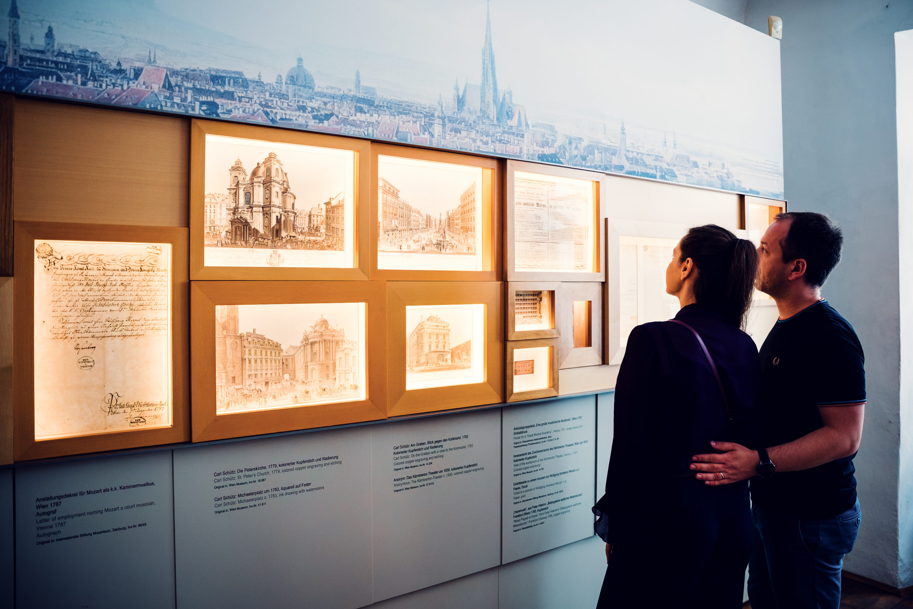 Mozart House Vienna interior exhibition room displaying composer's personal artifacts.