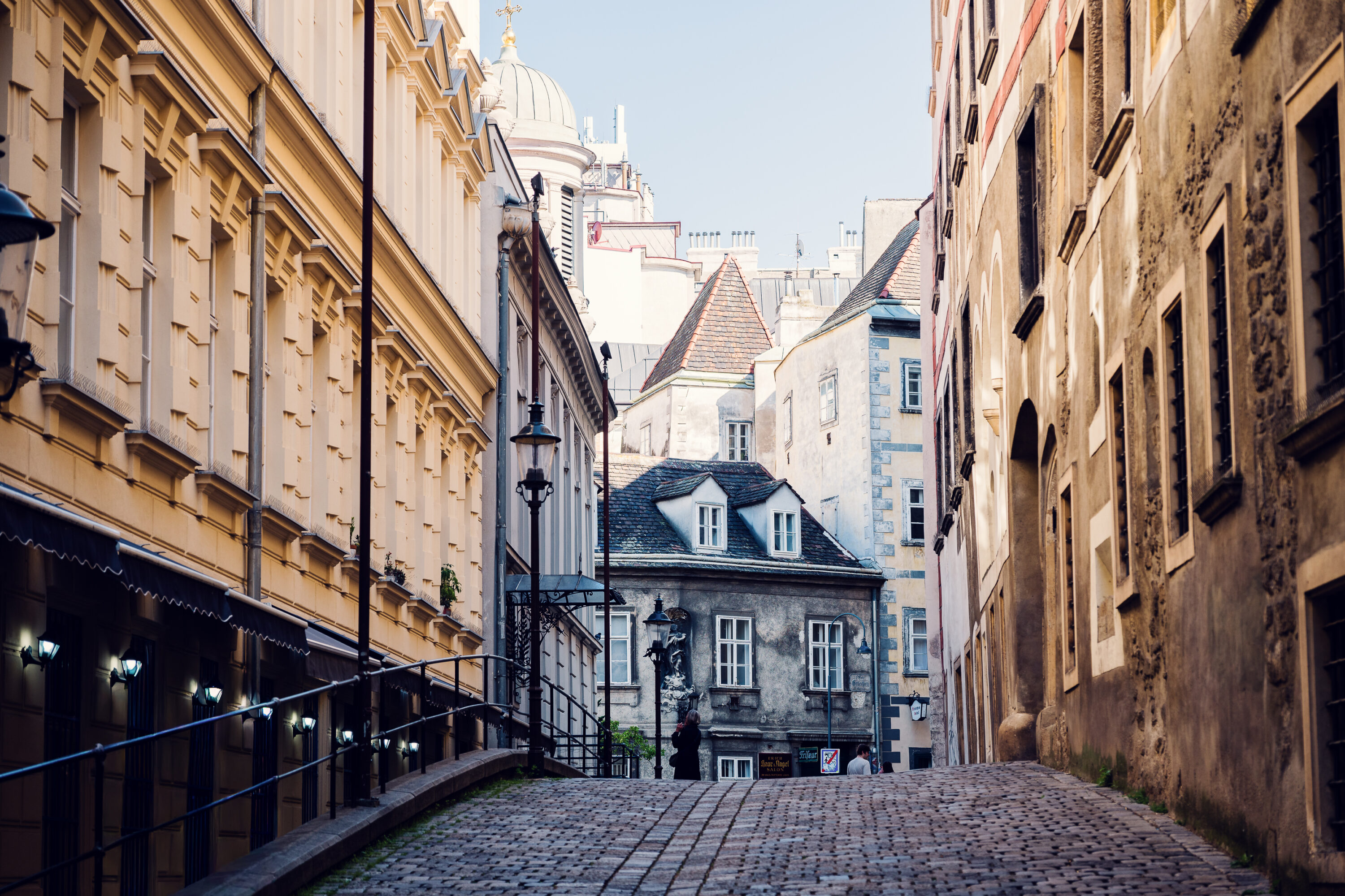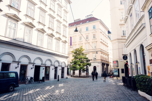 This narrow street runs through Vienna’s former medieval Jewish quarter. The mix of modern façades and older stone walls hints at the layered stories underneath. It’s a quiet, contemplative passage that links the city’s past to its present.