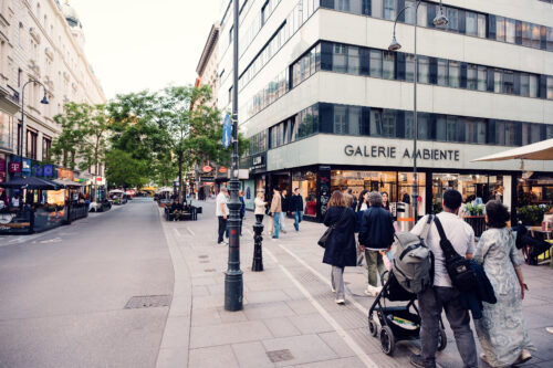 Elegant Kärntner Straße in summer splendor, where historic facades and modern boutiques create a perfect shopping backdrop.