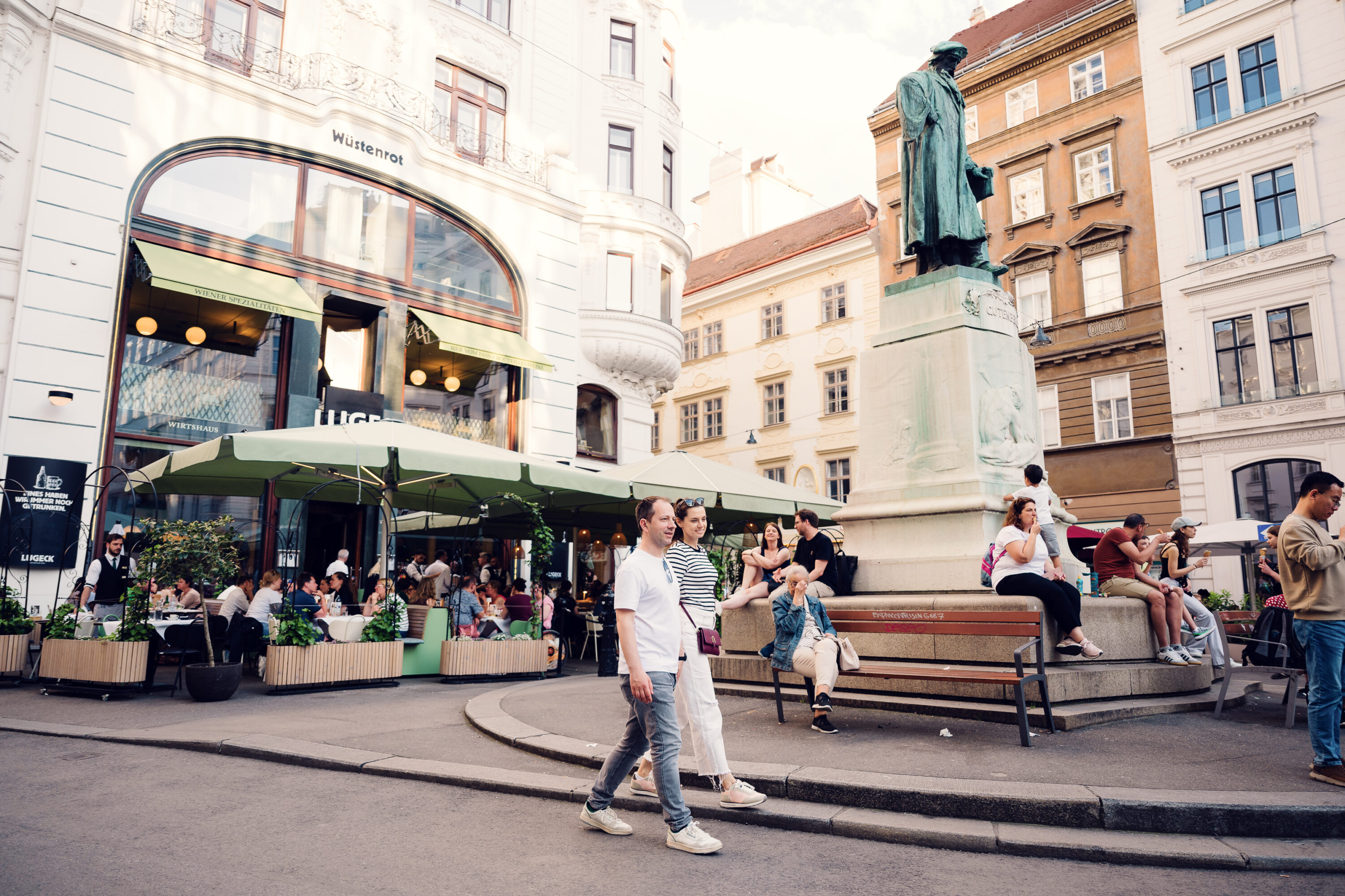 Here stands the Stadttempel, Vienna’s main synagogue, discreetly placed within an inner courtyard as required by law when it was built in the 1820s. While not visible from the street, the entrance arch and surrounding architecture tell the story of endurance. The lane also holds cafés and small restaurants that bring quiet life back into this historic area.