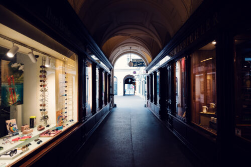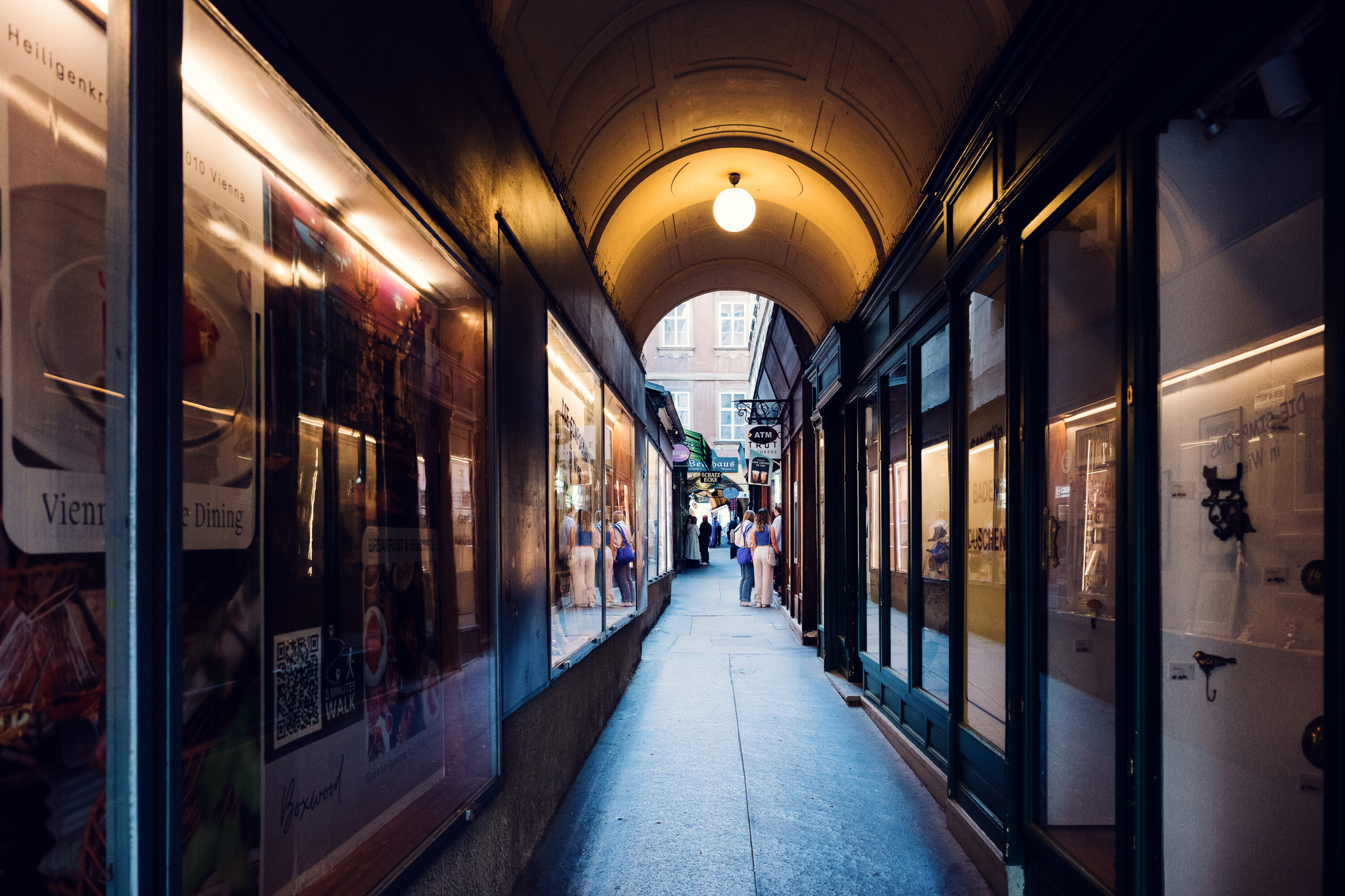 This elegant Durchgang (covered passage) links Bäckerstraße directly with Stephansplatz and captures the refined calm of Vienna’s First District. Light filters through arches onto polished stone, shop windows glow softly, and the gentle slope draws your eye toward the cathedral’s south tower ahead. It’s one of those rare Old Town shortcuts that feels more like a private arcade than a public route - a quiet, graceful approach to St. Stephen’s that reveals the city at its most timeless.